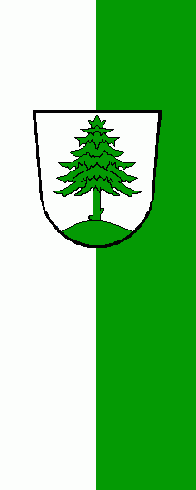 It is a white-green vertical bicolour. The coat of arms is shifted to the top.