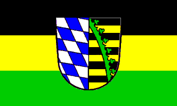 The arms were granted on July 23, 1962 and confirmed on May 23, 1973. The district forms the heart of the former Territory of Coburg. In 1353 it became a possession of the Princes of Saxony. The area belonged to Saxony, and later to Saxe-Coburg(-Gotha) until the late 19th century. After the First World War it became its own free state [republic] which was incorporated into Bavaria in 1920. The arms thus show the arms of Saxony in the left part and the diamonds of Bavaria in the right part.Literature: Stadler 1964-1971.
