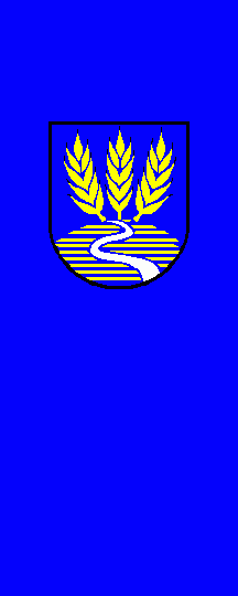It is a blue vertical monocolour. The coat of arms is shifted towards the top.
