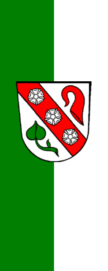 The Gemeinde Finsing adopted arms on 15th October 1963, blazon: Argent, a bend Gules with three roses Argent, barbed and seeded Or, between a ram's horn Gules and a water lily leaf slipped Vert. A flag was adopted on 28th April 1982. This is green-white and shows the arms. However actually used flags contain a mistake in the arms, the roses should be barbed yellow, but they are shown as white.