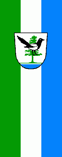 It is a green-white-blue vertical tricolour. The coat of arms is shifted to the top.