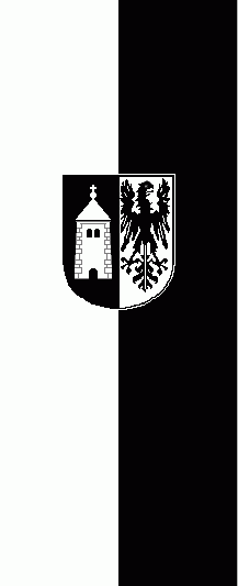 It is a white - black vertical bicolour. The coat of arms is in the centre of the banner.
