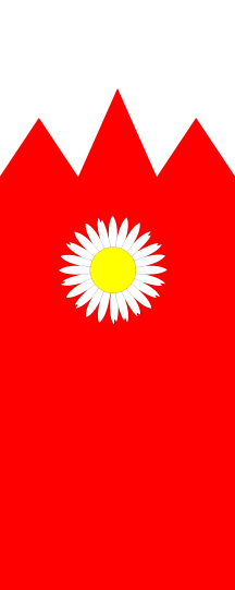 The shield displays a modified Franconian rake, charged in base with the blossom Argent seeded Or of a Carline thistle (Latin: Carlina acaulis)