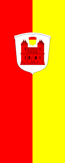 It is a red-yellow vertical bicolour. The coat of arms is shifted to the top.