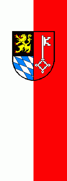 It is a red-white vertical bicolour. The coat of arms is shifted to the top.