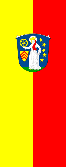 It is a yellow-red vertical bicolour. The coat of arms is shifted to the top.