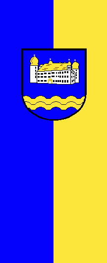 It is a blue-yellow vertical bicolour. The coat of arms is shifted to the top.