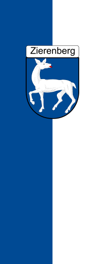 It is a blue-white vertical bicolour. The coat of arms with a black inscription "Zierenberg" in a rectangle on top of the shield is shifted to the top.