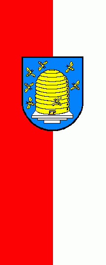 It is a red-white vertical bicolour. The coat of arms is shifted towards the top.