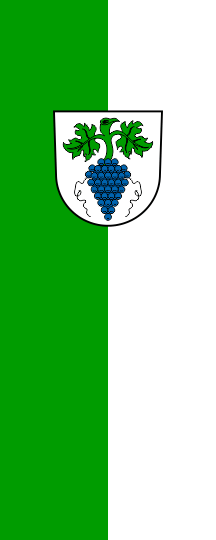 It is a green-white vertical bicolour. The coat of arms is shifted to the top.