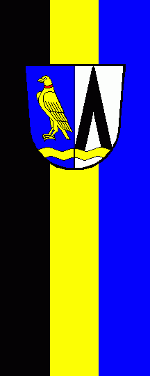 It is a black-yellow-blue vertical tricolour. The coat of arms is shifted to the top.