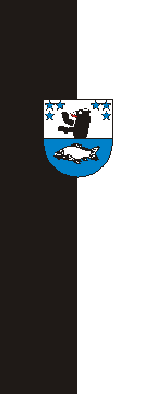 It is a black-white vertical bicolour. The coat of arms is shifted to the top.
