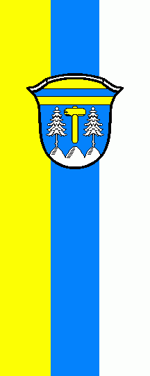 It is a yellow-blue-white tricolour or a blue-yellow vertical bicolour. The coat of arms of both is shifted towards the top.