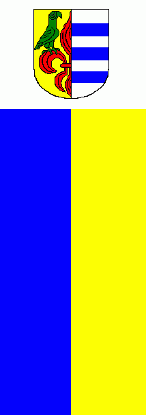 It is a blue - yellow vertical bicolour. The coat of arms is placed into a white bannerhead.