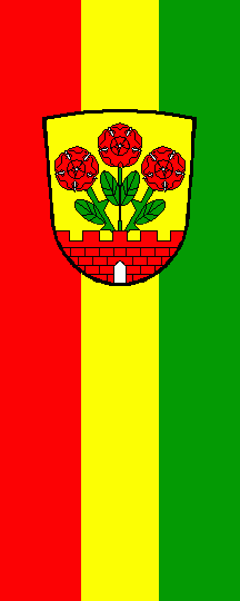 It is a red-yellow-green vertical tricolour. The coat of arms is shifted to the top.