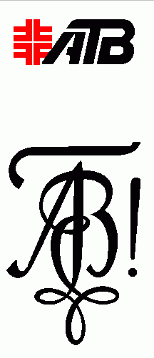 The banner is white. On top is an inscription in black italics "ATB" partially covering red athletics cross in front of the inscription.