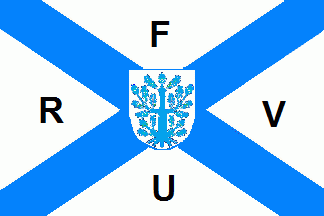 The white flag was divided by a light blue saltire. In its centre was a shield carrying a tree (similar to the municipal arms of nearby Offenbach). In the quarters were black initials as follows: "F" (top), "R" (hoist), "V" (fly) and "U" (bottom).