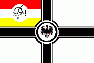 he flag was white parted by a centred cotized black cross. On its centre was a white disc cotized black-white-black and charged with a black Prussian eagle.