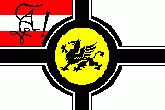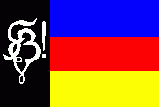 The upper hoist quarter was a black-red-yellow tricolour. The colours in canton are those of the German athletics movement. On lower fly was the black circle of the fraternity.