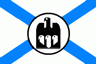 The flag was parted per saltire of blue and white. On its centre was a small yellow shield depicting a black bear.