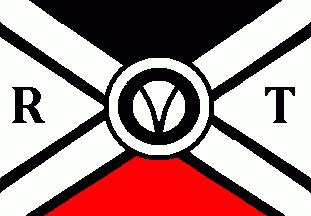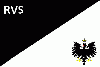 The flag was parted per bend sinister of black and white. On upper hoist quarter was a white inscription "RVS".