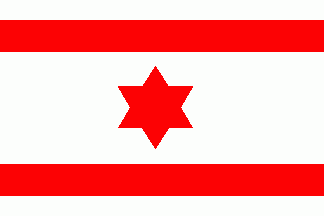 The flag was white with a centred red 6-point star between two red horizontal lines.