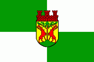 The flag was quartered of green and white with centre arms of Berlin Schöneberg with mural crown.