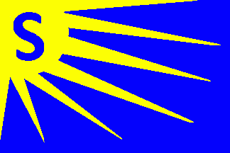 The flag was blue. On upper hoist quarter was a part of a yellow disc with blue inscription "S".