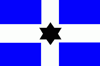 The blue flag was parted by a white centred cross. On its centre was a black 6-point star.