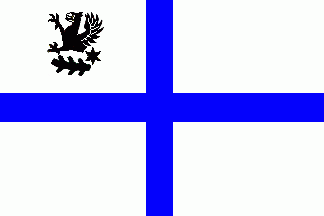 The white flag was divided by a blue saltire, in centre was a blue annulet charged with black dotted initials ".V." (1st line) and "O." (2nd line).