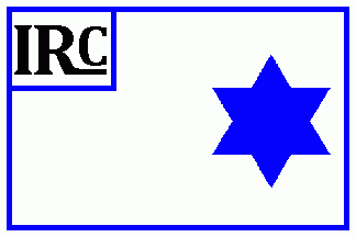 It was a white flag with blue bordure, in fly was a big blue 6-point star, on white canton fimbriated blue a black inscription "IRC".