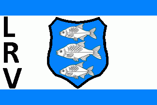 It was a white flag with centred town arms between blue edges at top and bottom, alongside the hoist black inscription "LRV".