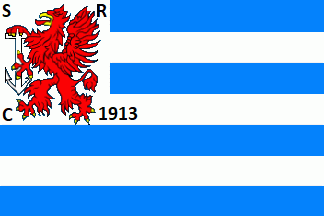 He was flanked by black inscriptions as follows: "S"(above hoist), "R"(above fly), "C"(below hoist) and "1913" on the 2nd white stripe from top.