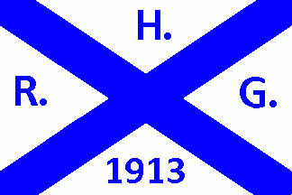 The flag was white parted by a blue saltire with blue inscriptions on any quarter as follows: "H."(top), "R."(hoist), "G."(fly) and "1913"(bottom).