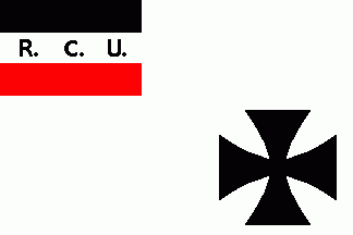 It was a white flag with black-white-red horizontal tricolour on canton with black inscription "R.C.U." on the white stripe.