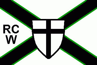 The green flag is divided per band by a white stripe. In this stripe are green capitals "ARCW".