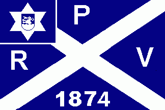 "P"(top), "R"(hoist), "V"(fly) and "1874"(bottom).