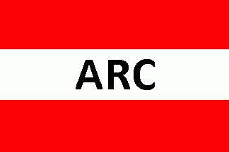 The flag is a red-white-red horizontal triband with black inscription "ARV" on the white stripe.