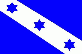 The blue flag was parted by a white bend charged with three blue 6-point stars.