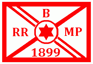 On every quarter are red inscriptions as follows: "B"(top), "RR"(hoist), "MP"(fly) and "1899"(bottom).