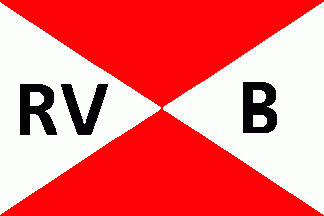 he flag was parted per saltire of white and red. The white triangles had black inscriptions "RV"(hoist) and "B"(fly)