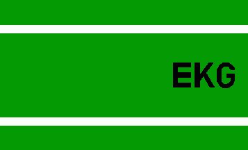 The green flag is separated by two thin white horizontal stripes, on fly between the stripes is a black inscription "EKG".