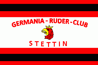 The white flag had red-black-red horizontal tribands as borders on top and bottom. On centre was the crowned griffin´s head from the city arms. It was flanked by red embowed inscriptions "GERMANIA-RUDER-CLUB"(above) and "STETTIN"(below).