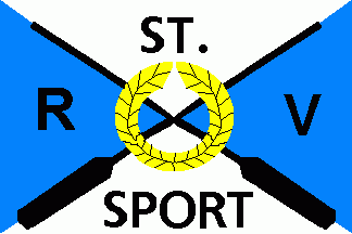 The flag was parted per saltire of blue and white with two black oars in saltire on the borderlines. On centre over all was a golden wreath, black inscriptions on every quarter as follows: "St."(top), "R"(hoist), "V"(fly) and "SPORT"(bottom).