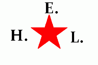 Schutenvermietung Ernst Lindemann, a barge rental company, based in Hamburg. The flag was white with a red 5-point star in centre, flanked by dotted, serifed, black initials "E." (top), "H." (hoist) and "L."(fly).