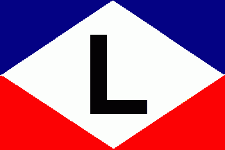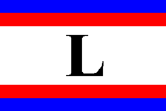 and a small five-pointed white star at the hoist corner. The "L" is vertically aligned on the lower horizontal dividing line,