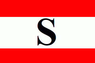 The flag is divided by a white saltire into red blue. In the centre is a white disc containing a red capital "S". The flag was said to belong to a transport and/or logistics company in Berlin. Two years have been gone by, but I haven't succeeded in identifying this flags. Jan Mertenswrote to me, confirming he had also seen the S-flag in Berlin in 2006.