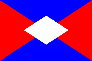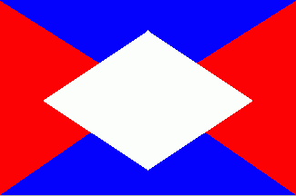 Flag with bigger lozenge: The flag is divided by saltire into red and blue with a white lozenge in the middle of the flag