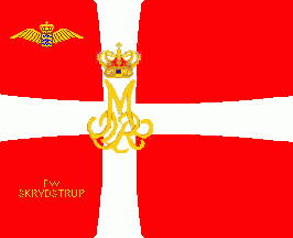 The flag displayed above is that on of the fighter wing. The inscription is: "FW" (1st line) "SKRYDSTRUP" (2nd line).