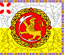 The standard is horizontally parted of silver and gold which rich damascene embroideries.